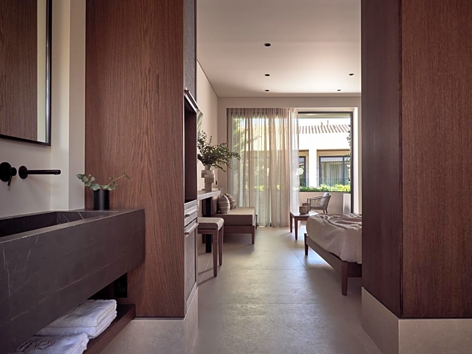 Opening to a balcony with pool or garden view, this uniquely decorated and air-conditioned suite offers: